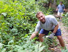 As Bill shows people how to find and remove porcelain berry, he laments that it’s “like the kudzu of the North,” an infamous weed that has terrorized southeast U.S. ecosystems. He explains that every time you open an area to sunlight, for a road or a trail or a building, you risk nonnative plants getting a foothold.